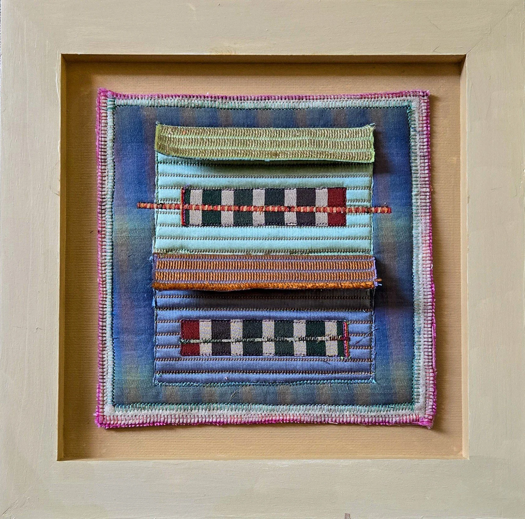 These works are 8×8in. sheltered in 12×12in. wooden frames.